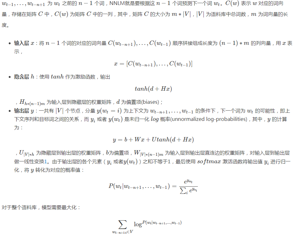 n元语言模型:对语料中一段长度为n 的序列wn−i+1,...,wi−1,即长度小于n的上文,n元语言模型需要最大化如下似然: