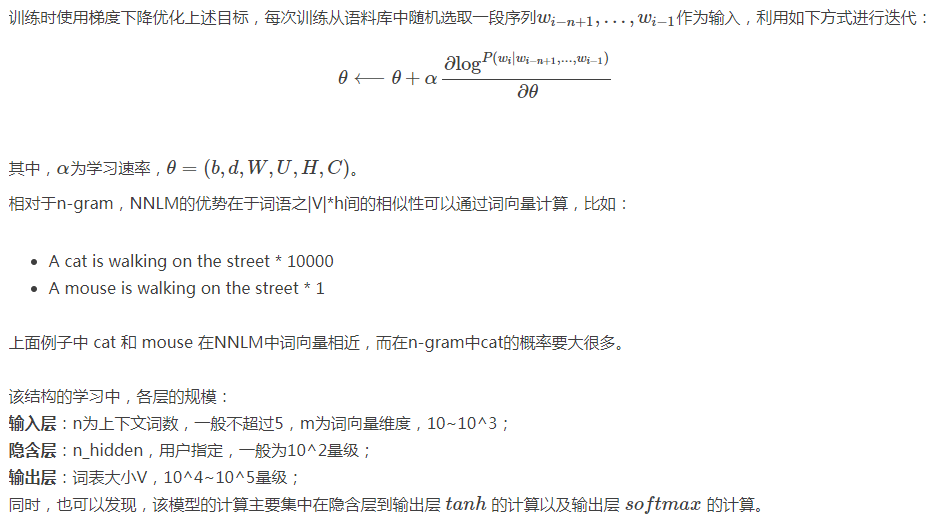 一般神经网络的输入层仅仅是一个输入数据,而在这里,输入层x也是一个参数(存在C中),也是需要优化的,优化之后词向量有了, 语言模型也有了。